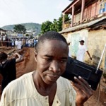 رجل يستمع إلى الإذاعة بينما ينتظر الناس للتصويت في الانتخابات الرئاسية والتشريعية يوم 17 نوفمبر 2012 في خليج فوره في فريتاون