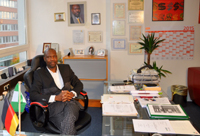 Hon. Gbandi holds a Masters in Peace Research and Conflict Mediation from the University of Hamburg and was a research fellow at German Institute of Global and Area Studies (GIGA) Germany. In Nigeria, he had his Bachelor of Science degree in Geography and Regional planning from the University of Calabar, Nigeria before travelling to Germany after his Youths Service with a State award distinction for outstanding service. Since his so journey in Germany dating back 20 years now, he has practically been found in everywhere that Nigeria and Africa affair is the focus point. Gbandi is officially the President of Nigerians in Diaspora Organization Europe, German chapter, the coordinator of the Media Commission African Union African Diaspora, Six Region (AUADS) Germany, a board Member, State of Hamburg Foundation for Migrants, the representative of the Africa Region and the Speaker of Anti Discrimination Committee of Hamburg Senate Integration Advisory Council. Gbandi was the project officer of the defunct Nigerian Professionals and Entrepreneurs in Germany (NIPEG), a founding member and the first Sport Director as well as a member of the board of trustee of the Nigerian Football Club Germany (NCG FC) Hamburg