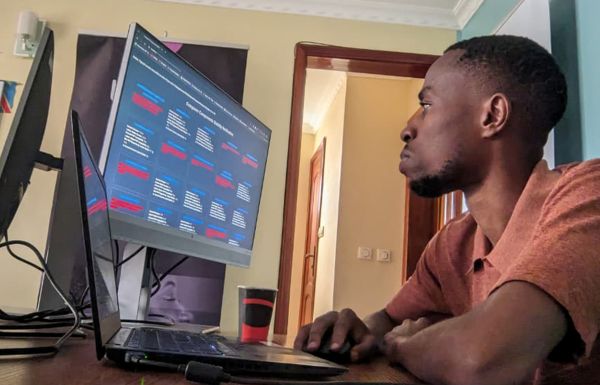 Joseph Kahusi, a web developer, working in his home office in Goma. Photo Courtesy: Joseph Kahusi
