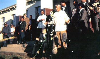 I must admit that the occasion was overwhelming. Suddenly I was blinded by my four decades in the struggle. It just came – the many arrests, imprisonments, solitary confinements, the torture and beatings, underground exploits, ignoring bannings (severe restriction on movements and association). Exile – with all its ups and downs combined with the worst aspect of all – uncertainty and home-sickness. The last two are murderous. The whole 40 years just passed through my mind in those few seconds. Unbelievable. I am quite certain I was not the only “victim” of such an experience. Later that day, I also cast my vote at the age of 62. It must be said that in the German Democratic Republic I was allowed to participate in local lections. That is not the case after the Wende in Germany.